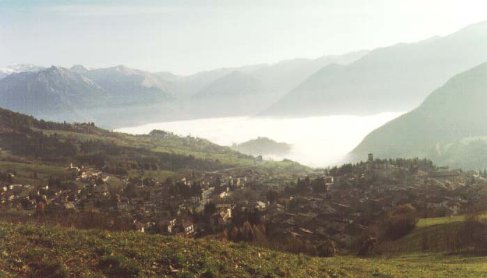 : L'altopiano bornese in autunno, il fondo valle coperto da fitta nebbia
