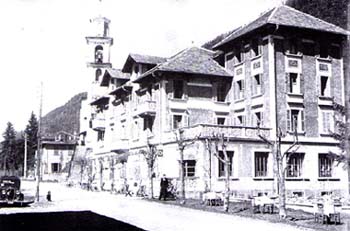 N.B.: Il sig. Antonio Stefanini di Corteno mi ha fatto pervenire (in data luglio 1999) questa nota: "In realtà l'Albergo Aprica nel quale soggiornò (pare ininterrottamente dal 1880 al 1912) il Nobel Camillo Golgi era un altro, il primo con tale nome. L'Albergo Aprica della foto (che non è affatto del 1910, ma sicuramente successiva al 1925-30), fu costruito - appunto - dopo la morte del Golgi, ampliando quella che era solo una ridotta "depandance dell'hotel Corvi San Pietro", che si trovava di fronte.