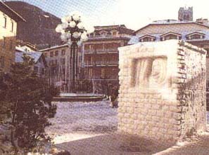 : Statue di ghiaccio nel centro del paese